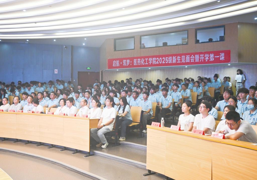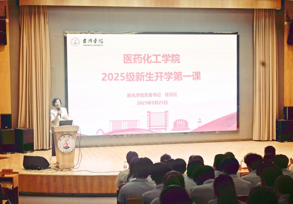 金秋送爽,丹桂飘香。9月25日晚上,医化学院在椒江校区大学生活动中心隆重举行2025级新生见面会暨“开学第一课”。学院党政领导、专业系室主任、新生班主任、全体辅导员和25级新生参加,学院党委副书记刘贵花主持活动。