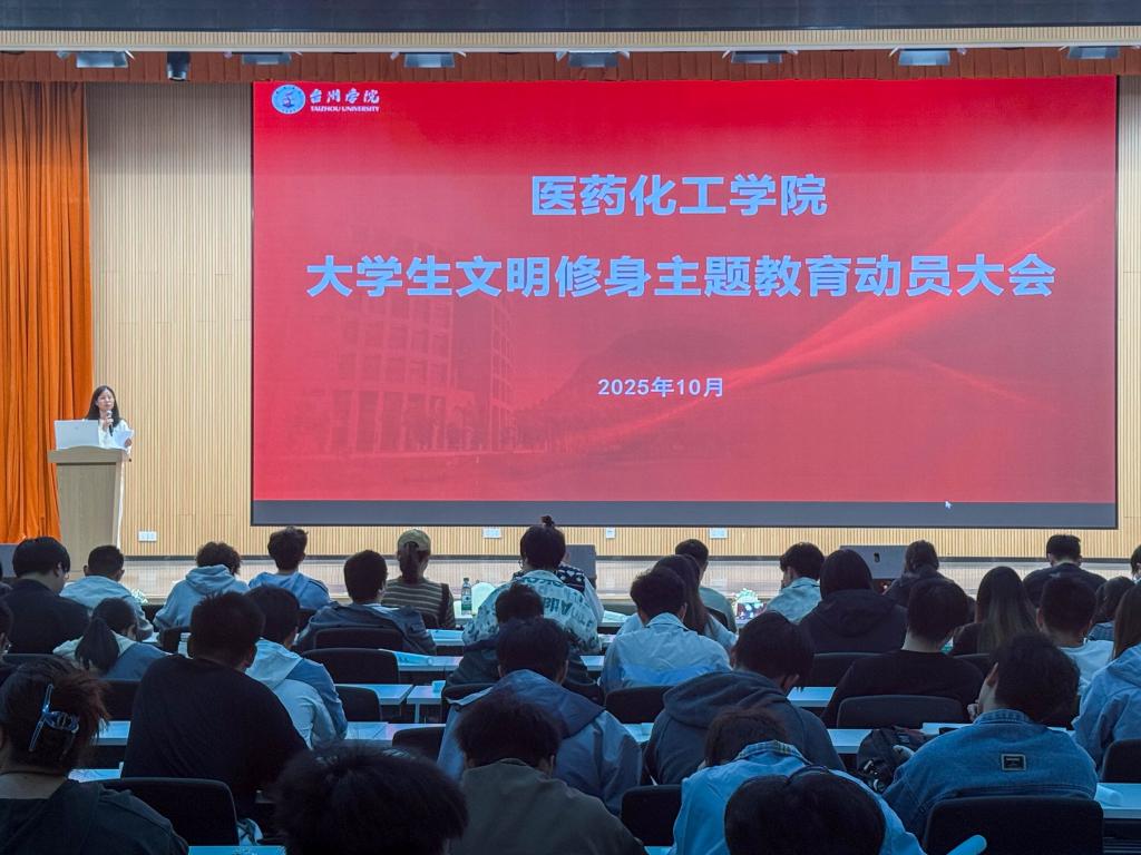 为进一步加强大学生思想政治教育,提升学生思想道德素质与文明素养,营造文明、和谐、健康的校园文化氛围,10月26日晚,医化学院大学生文明修身主题教育动员大会在椒江校区科技楼328会议室顺利举行。学院党委副书记刘贵花出席活动,各年级辅导员、三大班委、全体团学会成员及25级学生代表参加。