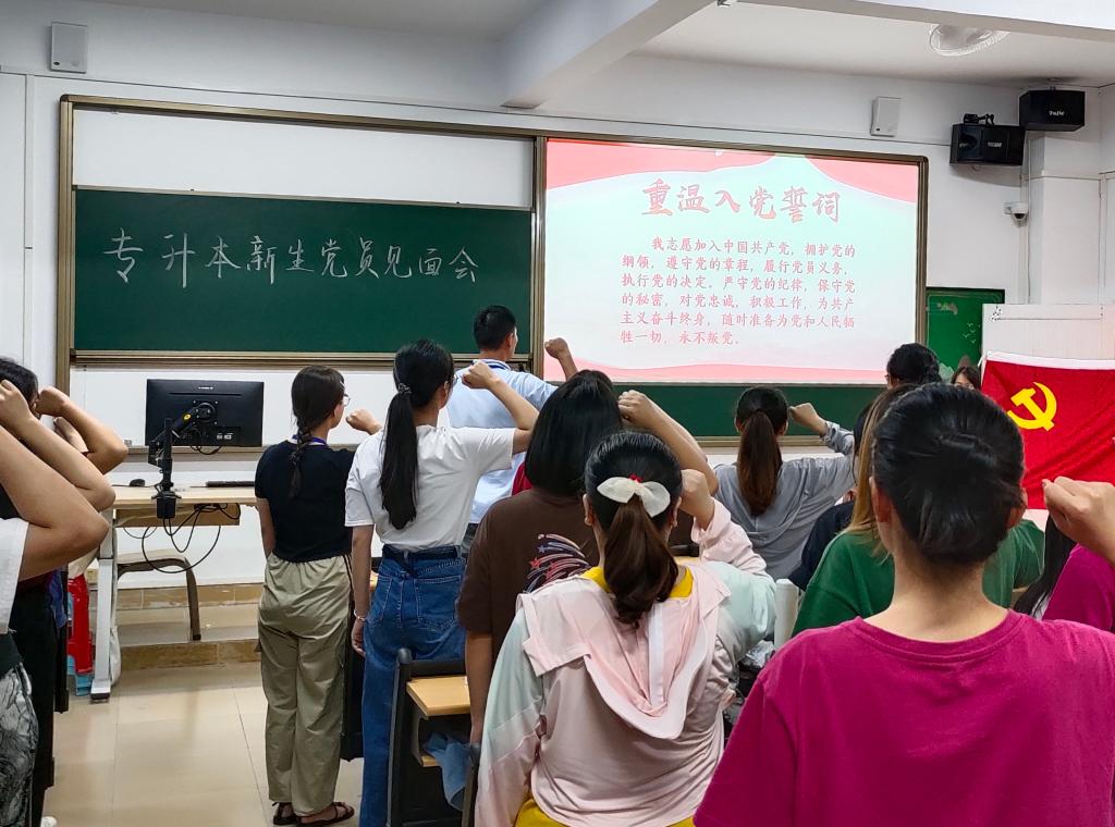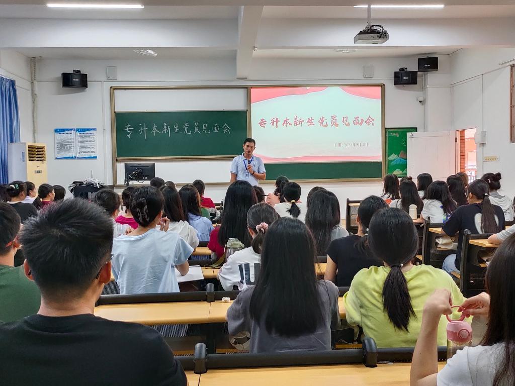 为增强新生党员的身份意识,促进学院党建工作迈上新的台阶,9月18日下午,人文与教育学院党支部在7栋303召开专升本新生党员见面会,会议由党员服务站组织员王倩老师主持,人文与教育学院党总支书记刘亮出席本次大会,21级70名专升本新生党员参加了本次见面会。