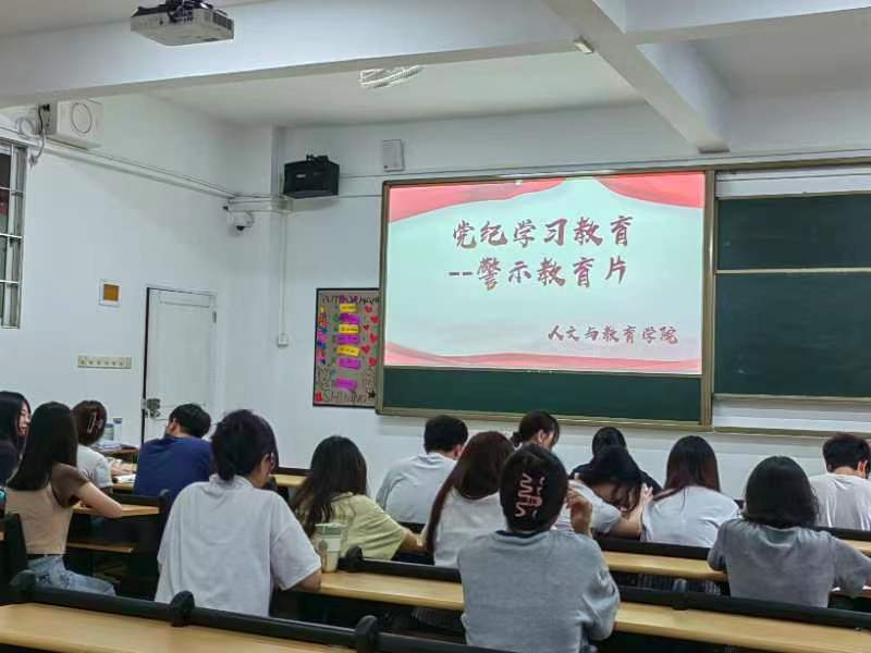 为深入学习贯彻修订后的《中国共产党纪律处分条例》,组织开展好党纪学习教育,进一步提升党纪学习教育成效,引导党员干部学纪、知纪、明纪、守纪,人文与教育学院于2024年5月30日下午15:30分在7栋402组织2024年第一期预备党员召开“党纪学习教育—观看警示教育片”活动。