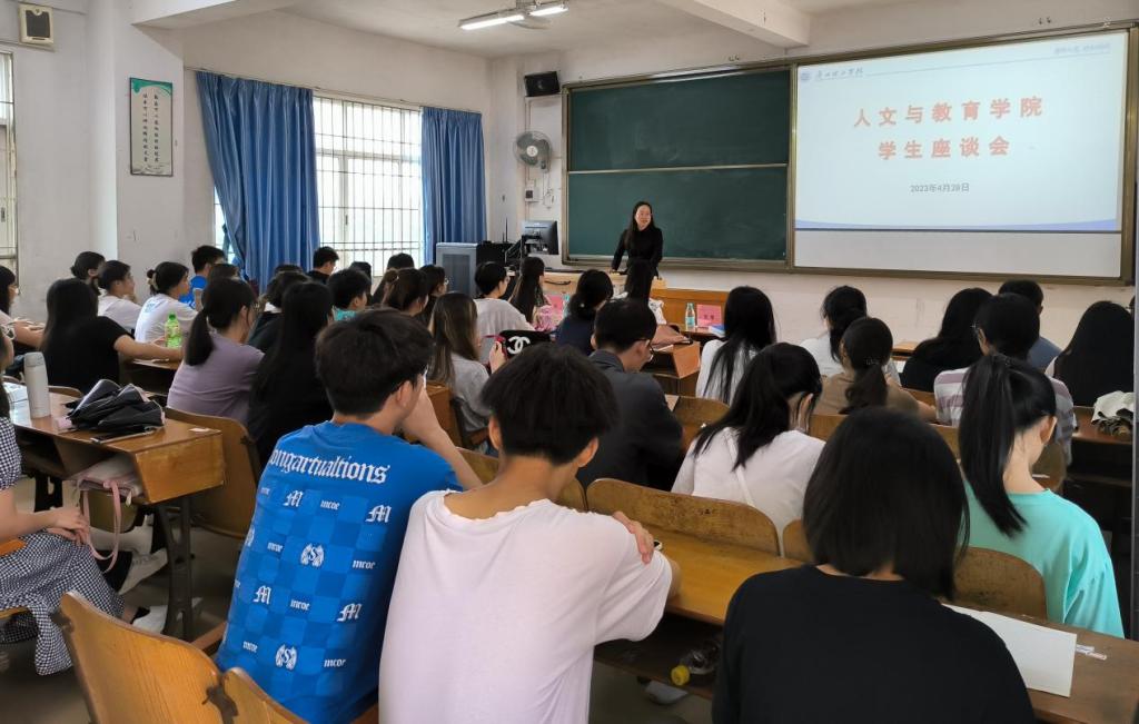 4月28日,人文与教育学院2022—2023学年第二学期学生座谈会在6栋经管楼506教室召开。人文与教育学院副院长汪美葵、系主任黄静、副系主任魏攀以及22级各班学委和学生代表参会。