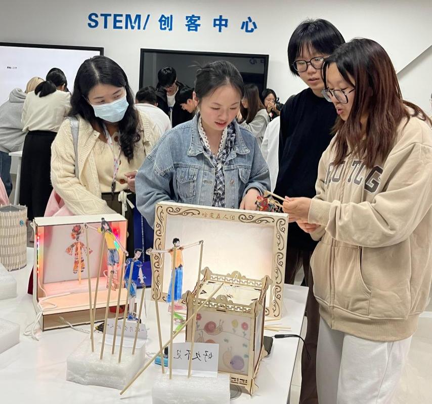 我校教师听取工作坊“皮影戏”C-STEAM课程作品介绍