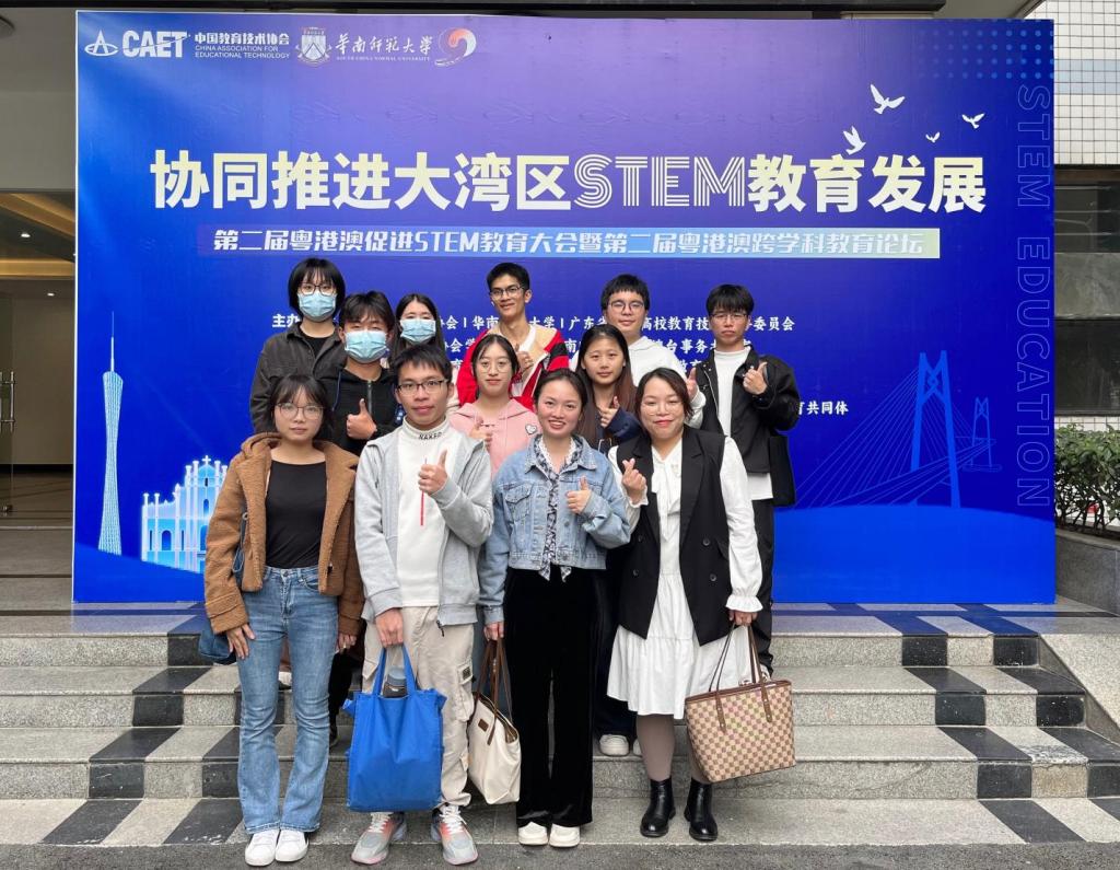 2023年12月1日至3日,“第二届参观粤港澳促进STEM教育大会暨第二届粤港澳跨学科教育论坛”在华南师范大学召开。本次大会由华南师范大学教育信息技术学院举办,大会的主题是“协同推进大湾区STEM教育发展”,旨在推动提升教师STEM教育专业素养,增强学生的探究能力、批判性思维以及创新能力。论坛期间,人文与教育学院张丽娜老师、马会媚老师带领曾诗雅、刘家勤、沈金钟、张怀文等10位学生到华南师范大学参加此次大会的工作坊交流和学习。