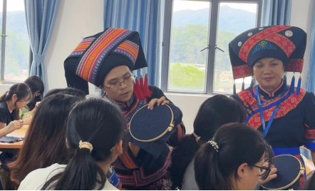 在此,希望同学们能积极向李芳老师学习壮族刺绣手艺,织好手中一针一线,织出各民族文化交流的璀璨桥梁!