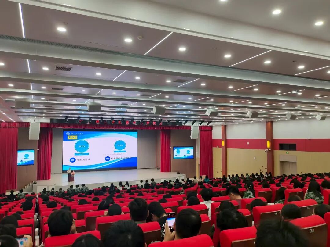 陈书记首先从"我是谁?我会是谁?"的哲学思考切入,引导新生思考自我定位与人生方向。陈书记结合广东省高考相关数据、学校在多项排名中的表现及学院专业设置等概况,引导学生对个人及所在集体进行清晰认知与定位。随后陈书记展示了学校往届毕业生去向、月收入及满意度等数据,启发学生思考“我会是谁”,并以此倒推,规划自己的大学生活。