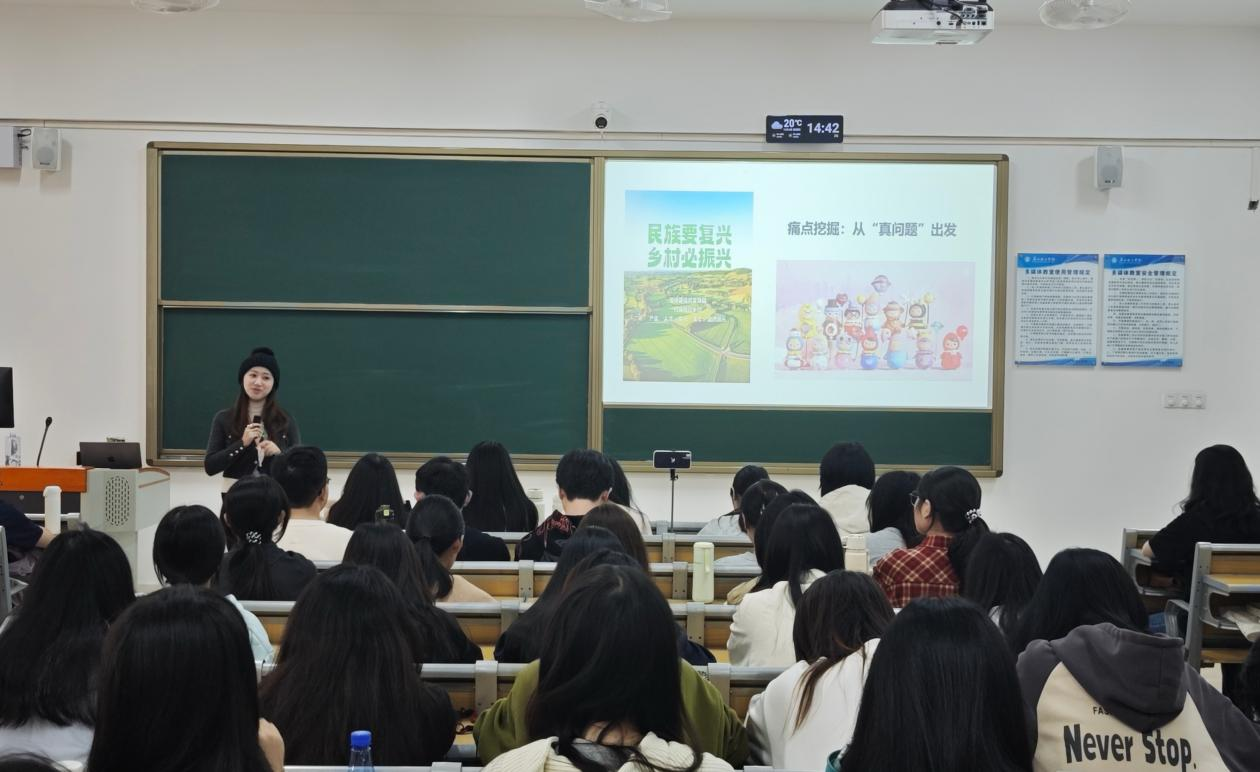 12月4日下午,广州理工学院人文与教育学院“广理大讲堂”系列活动走进惠州校区2-406教室,《0到1:大学生创新创业大赛全流程攻略》专题讲座在此顺利举办。本次讲座邀请人文与教育学院周玉婷老师担任主讲,线下与线上合计192名学生到场聆听,共同解锁创新创业竞赛的“通关密码”。