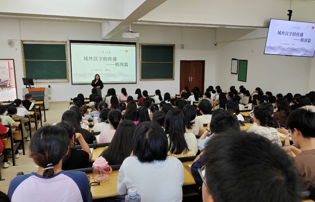 为了认真贯彻落实《新时代爱国主义教育实施纲要》,2023年10月26日在广州理工学院惠州校区开展了主题为“域外汉字的传播——韩国篇”的文学讲座。本次讲座的主讲人是来自本校文学系的韩艳洁博士,同时邀请到了人文与教育学院副院长陈南先教授做开场主持,并由人文与教育学院吴舒静教授进行了总结评价。