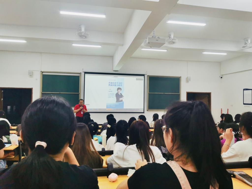 11月8日晚19点,惠州校区人文与教育学院开展了“普通话水平及经典诵读能力提升”主题讲座。此次讲座由陈南先副院长主持,胡海波老师主讲,人文与教育学院2023级全体普高学生参加。