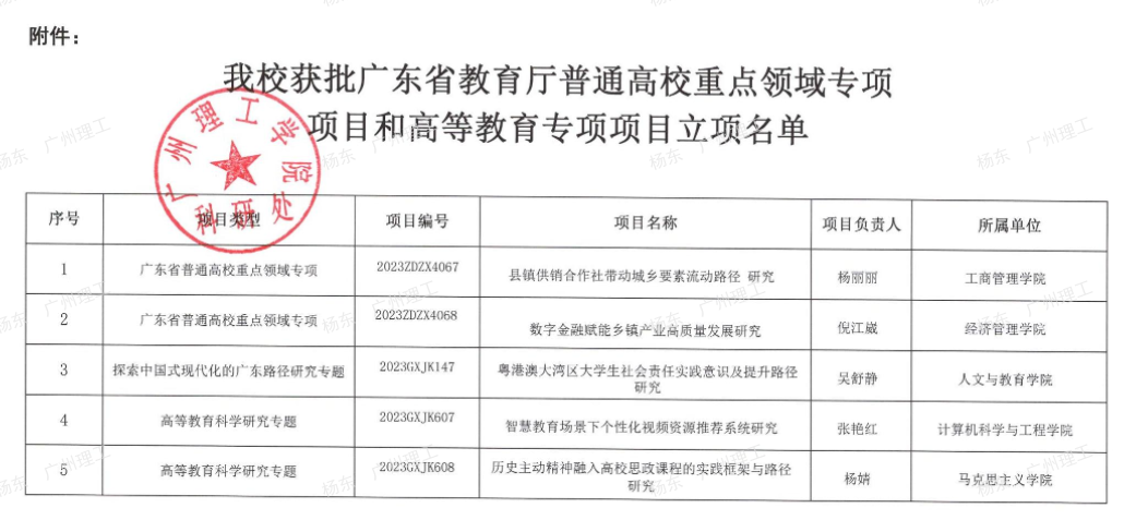 近日,广东省教育科学规划领导小组办公室发布了《关于公布2023年度教育科学规划课题(高等教育专项)立项名单的通知》,我院吴舒静博士申报的“粤港澳大湾区大学生社会责任实践意识及提升路径之研究”获批立项,这一项目属于“探索中国式现代化的广东路径研究专题”,课题经费3万元。这也是人文与教育学院自2022年成立以来所获得的第一个省部级课题。
