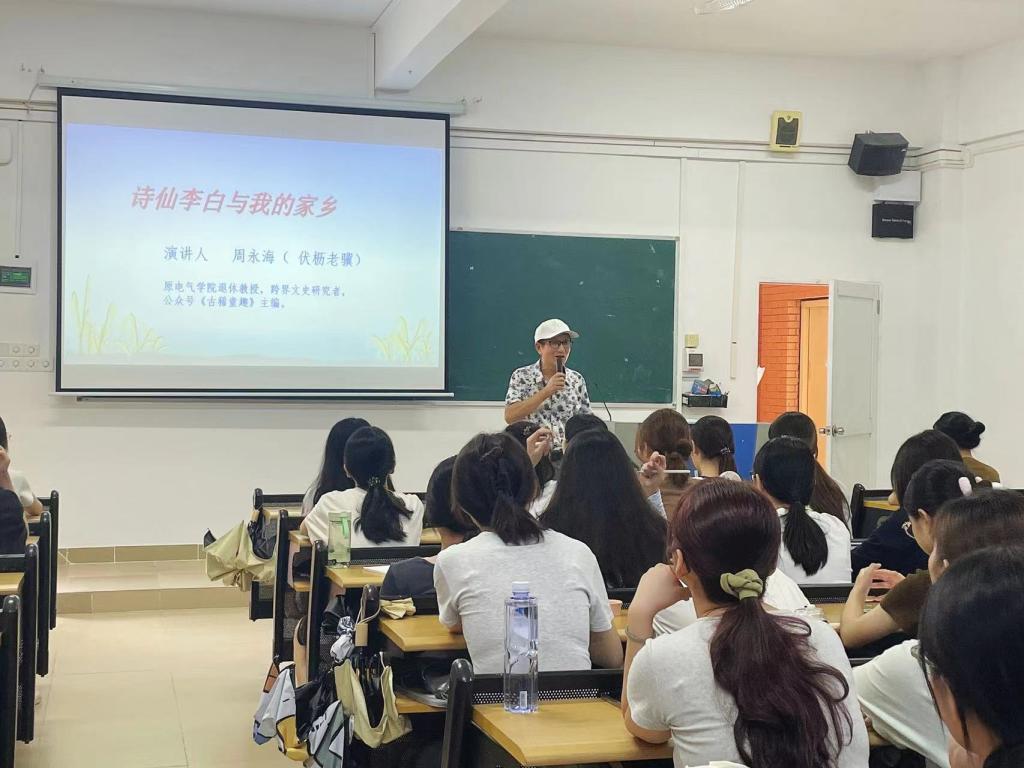 近日,广州理工学院迎来了一场别开生面的文化盛宴。我校退休教授周永海先生,以其深厚的文学造诣和独特的视角,为师生们带来了一场题为《诗仙李白与我的家乡》的精彩讲座。