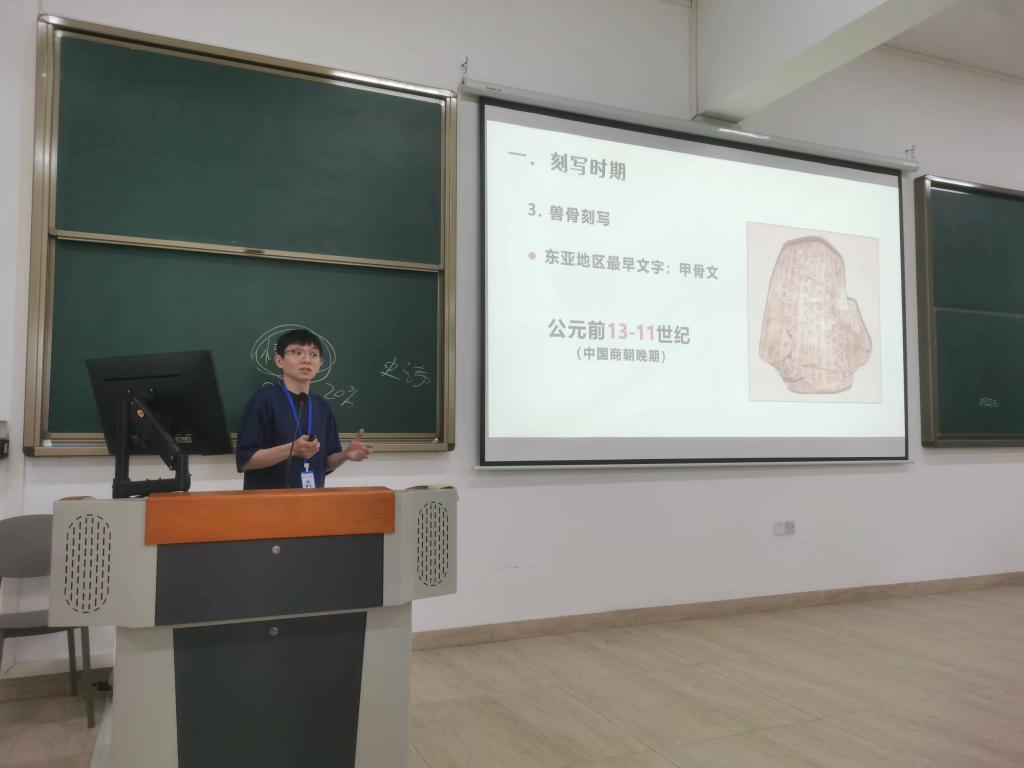 讲座中,人文与教育学院文学系现当代教研室教师符书华老师以渊博的知识和生动的讲述,带领听众穿越千年时空,探寻人类文明发展的悠悠历史。讲座伊始,符老师以古巴比伦时期刻在泥板上的楔形文字与现代书籍的对比照片导入,请大家思考古早的书演变为现代的书背后所蕴含的厚重历史和文化演进。随后,符老师从刻写时期、手抄本时期、印刷时期、数码时代四大历史阶段为听众开启书籍诞生与演进过程的详细介绍。从原始时期刻在泥板、石板、木板、兽骨、蜡板、金属上的“书”,到以莎草、牲畜皮、昆虫纤维为原料制作纸张开启手抄本时代,这一时期,书籍经历了从竹简、帛书到纸书的发展,特别是在装帧革命后纸书由卷轴演进为册页,现代意义上的“书本”就此诞生。在印刷时代的讲述中,符老师重点介绍了真正开启现代活字印刷时代的古腾堡印刷术,该印刷术发明于1439年,它的出现为15世纪至18世纪,欧洲文艺复兴、宗教改革、科学革命、启蒙运动乃至工业革命等提供了必要条件,因为正是该技术的出现,带来了欧洲书籍印刷数量在这三百年间井喷式地增长,为现代文明的传播提供了必不可少的媒介。进入数码时代,符老师为大家展现了丰富多样的数字书籍资源,特别是现场访问哈佛燕京馆藏中文古籍库的演示,为大家生动诠释了书使知识不再有边界,极大地激发了广大学子的求知欲,阅读欲。