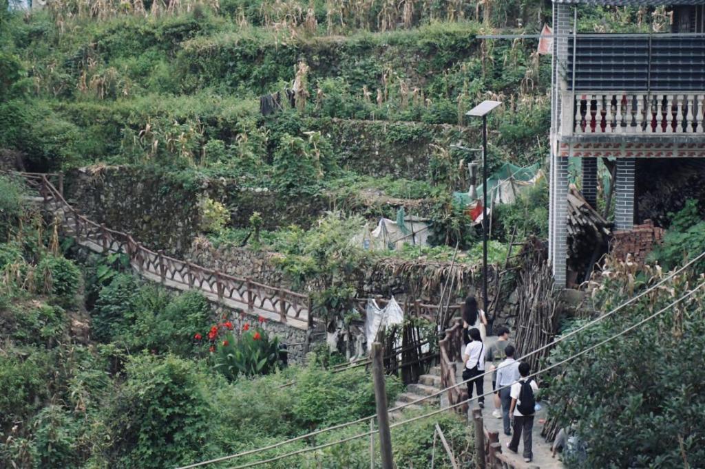 覃守达老师(倒数第二位)带领大家进入油岭瑶寨进行考察并感受瑶寨的美