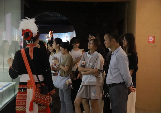 讲解员给师生讲解瑶族的历史文化