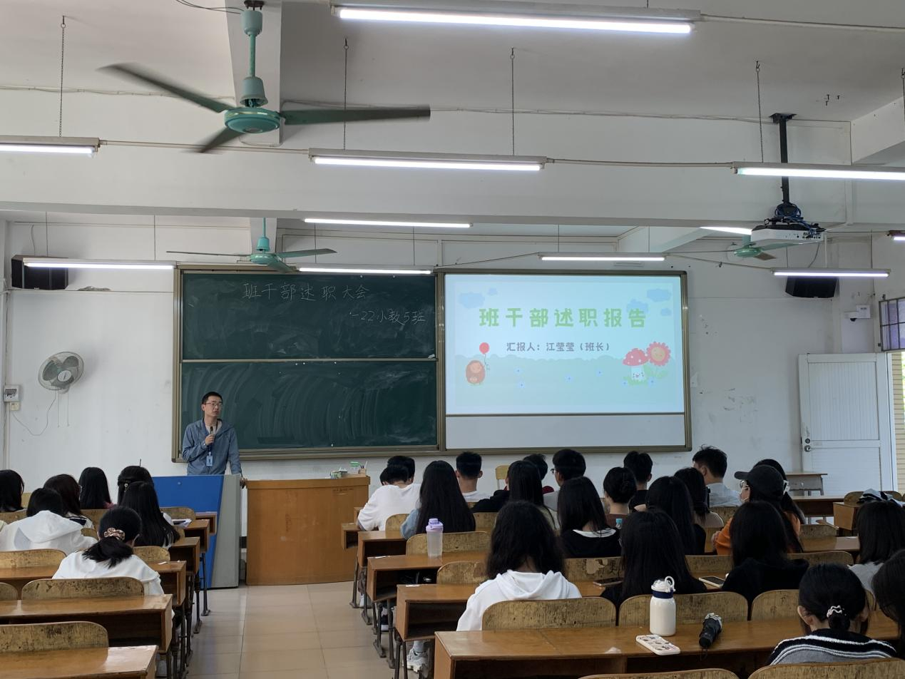 为各班级班委提供展示自我、交流学习的机会,总结过往工作经验,加强班委与同学之间的沟通与交流,为今后班级工作的有效开展打下坚实基础,人文与教育学院于4月26日在6栋教学楼各班会教室开展班委述职活动。本次述职活动由班级组织委员主持,班级全体学生共同参加。