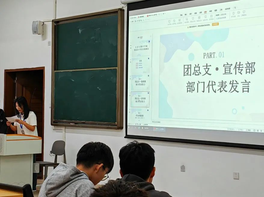 最后是团总支书记高思茵老师的讲话,她带着我们回顾了人文与教育学院团总支学生会成立一年来所经历的挫折与荣誉,阐述了作为一名教师的幸福感,告诫新干事们高中与大学时期思维观念的必要转换,更表达了对新干事与老成员的殷切期盼,希望新干事们能够多磨砺自身,多参加活动,更好地感悟学生会全心全意为同学服务的宗旨。