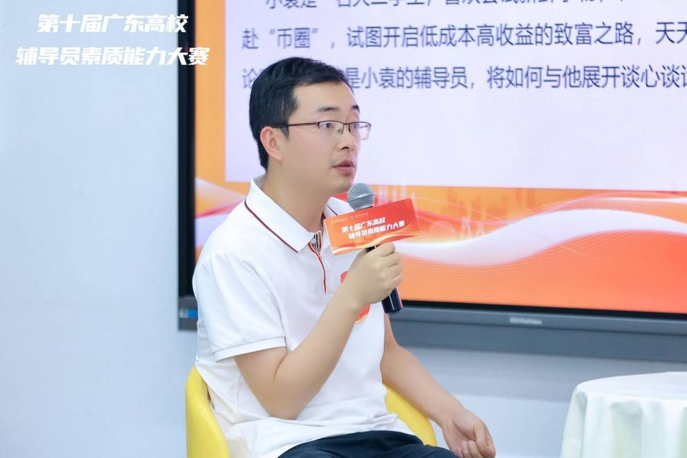 广东高校辅导员素质能力大赛每两年举办一次,旨在全面考察辅导员的思想教育能力、语言表达能力、逻辑思维能力、应急处理能力、分析解决实际问题等多方面的知识和技能。省级决赛分为基础知识测试和实践技能比赛两个阶段,基础知识测试采用闭卷笔试作答方式进行,笔试成绩前60名的选手晋级第二阶段实践技能比赛,实践技能比赛包括案例研讨、谈心谈话两项内容。