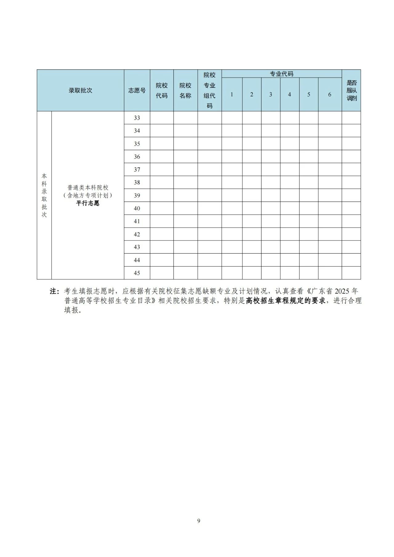 1.广东省2025年普通高校招生征集志愿表(样式)