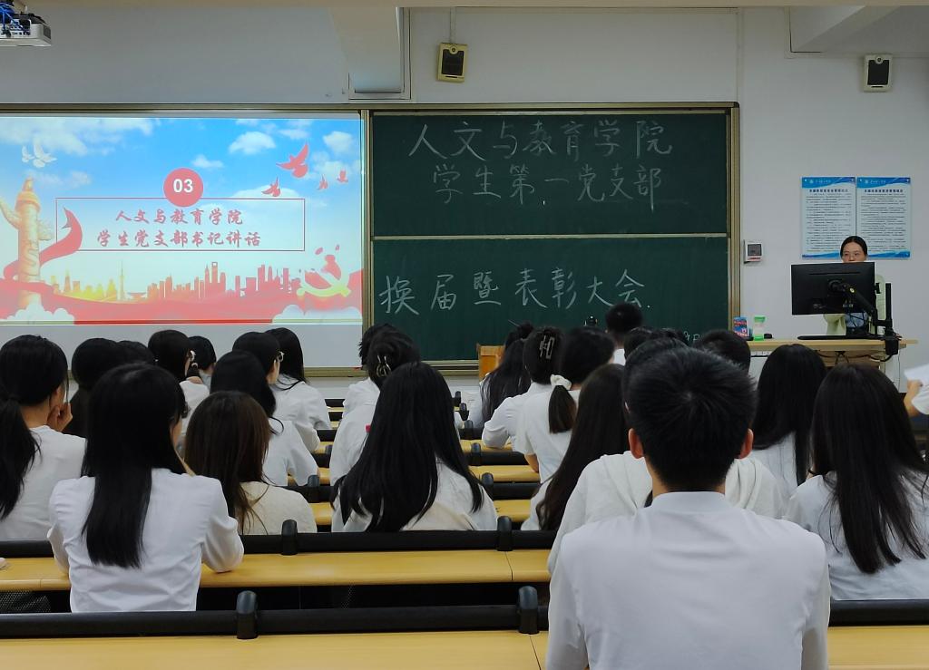 11月9日,人文与教育学院召开学生第一党支部换届暨表彰大会会议。会议第一项议程是党组织换届选举,这次换届充分体现了党内民主,坚持按照党章和党内选举办法的要求进行,充分发扬了党内政治生活的优良传统。会议回顾了过去一年党组织的工作成果和存在的问题,并制定了下一阶段工作的主要目标和方向。其次,通过民主选举方式,选出了一支理想信念坚定、综合素质过硬、工作业绩突出的新一届党支部成员,他们分别是杨力红同志、刘浩同志、彭珊珊同志,卓妙紫同志,其中卓妙紫同志当选为学生第一党支部副书记、杨力红同志当选为组织委员、刘浩同志当选为宣传委员、彭珊珊同志当选为纪检委员。