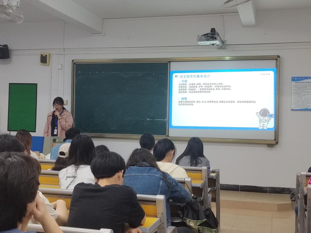 班会伊始,何老师介绍了论文撰写的重要性,并强调了学术论文的严谨性和规范性。何老师指出,论文撰写过程包含三个重要部分——论文撰写前准备、论文撰写基本格式和论文的修改与完善。