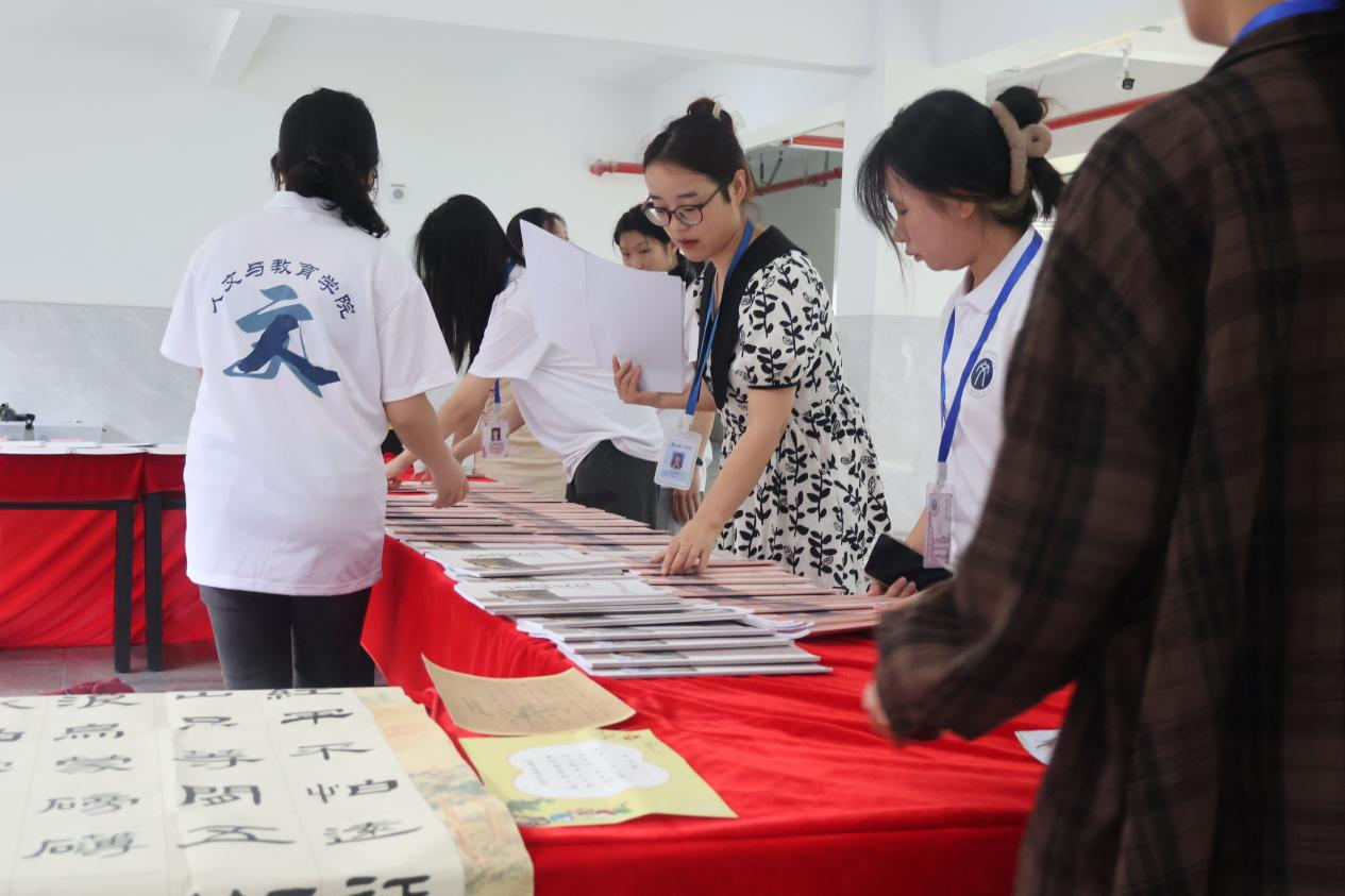 在本次活动中,我们学校精心策划了一系列的活动,其中最受好评的是科技作品展。每个学院在特定的场地展览着本学院的创新作品以及历年来的荣誉和成就。活动现场中,各个学院的科技展台琳琅满目,其中最为引人注目的是文教学院的展台,展台上展示了许多学生精心绘制的书法作品,每一个书法作品都有着“秀骨清像”的特点,如一股清气扑面而来,让人感受到线条的俊朗精炼、格调的清新高雅、画面的干净纯洁,充分体现了书法艺术高度的形式美感,同时也吸引了不少同学驻足观摩。除此之外,文教学院还展示了中国的非遗剪纸作品,学生以精湛的技艺和富有创意的构思,创作出了一幅幅栩栩如生、寓意深远的剪纸作品,这些作品不仅展示了剪纸艺术的独特魅力,也体现了学生们对美好生活的热爱与追求。值得一提的是,整个展览活动的过程中,文教学院的同学都积极主动地为前来参观的学生和老师提供耐心详细的讲解,让他们意识到书法和剪纸不仅是一种独特的艺术形式,更是中华民族传统文化的重要组成部分。