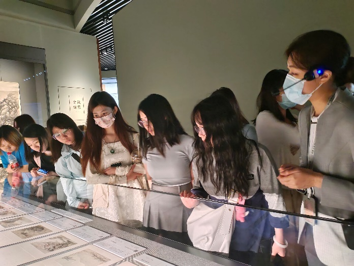 在博物馆专业讲解员的带领下,21中文1班同学们走进了中国历代书画馆,深度了解清代书画展,尤其是清代画坛两大重要流派——金陵画派与扬州画派的艺术风采。