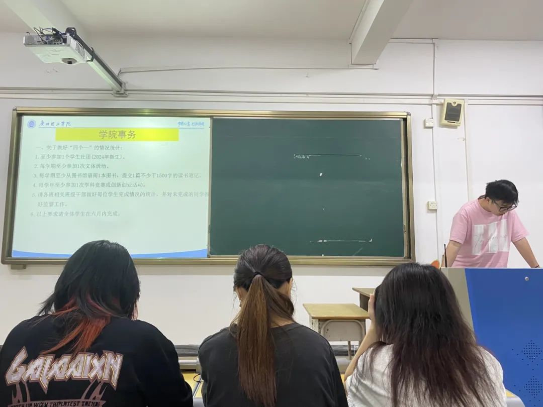 最后,学院强调“四个一”情况统计工作的重要性,包括参加学生社团、文体活动、图书借阅及读书笔记、学科竞赛或创新创业活动。相关班级干部需做好每位学生的完成情况统计,并对未完成的同学进行监督,确保全体学生在六月内完成这些要求。