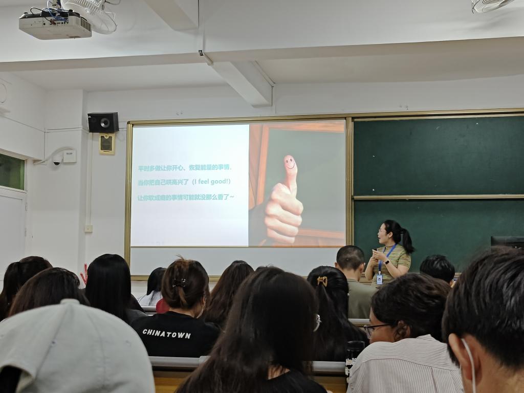 随后董老师尝试分析了软成瘾背后的成因,如小组作业、某场考试、关系冲突等近因;大环境不确定性增加,就业压力变大等远因;软成瘾行为具有的简单、即刻反馈的特性等。为了帮助同学们克服“软成瘾”,董老师还提出了一些实用的替代办法,如去公园亲近大自然、云陪伴云倾听、深度的友谊和亲密关系、列小目标循序渐进等。