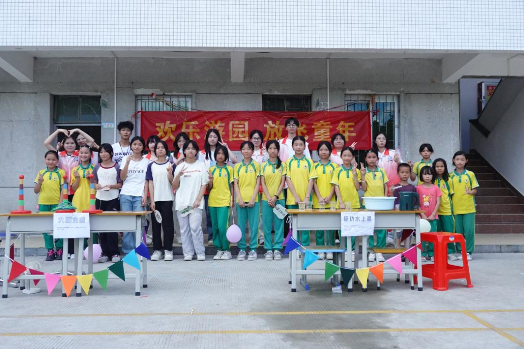 轻快的乐曲响起,彩色的气球在微风中飘荡,伴随着孩子们的笑声,整个世界都充满了活力。每一步都是一个轻快的节拍,每一个笑容勾勒出欢快的图画。今天下午,从化百千万工程实践团在吕田镇第三小学宿舍楼下,为全校的学生们举办一场别开生面的游园会。