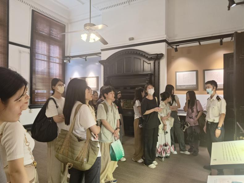 粤海关博物馆以海关文物收藏展示、海关历史建筑保护、粤海关历史研究等业务为核心,致力于传承海关历史,传播海关文化,弘扬海关精神,打造海关开展对外文化交流的窗口和平台。同学们在现场两位讲解员的带领下,由外到内进行参观。依次了解了粤海关博物馆的建成历史以及其建筑特色。