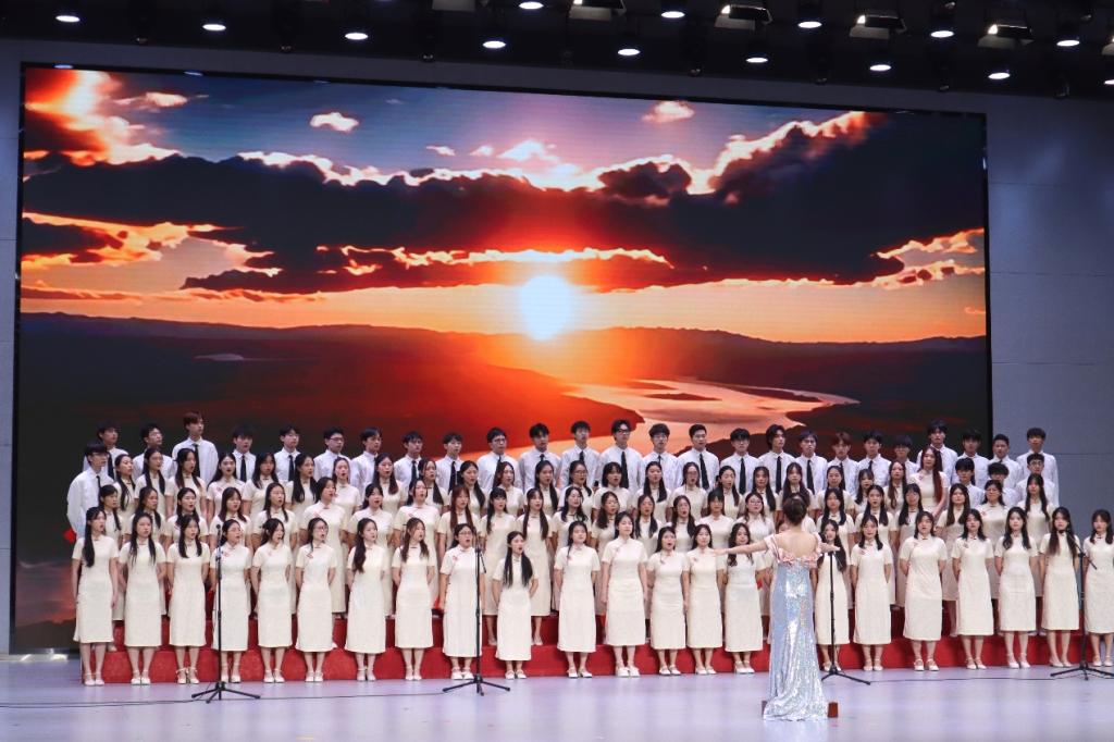 历经18天的前期准备,我院合唱团以斗志昂扬的劲头唱出一腔热血。首先以一首《有我》唱出了青春逢盛世,奋斗正当时之情。整体旋律委婉动听,高潮青春热血,一位位文教学子展示出了意气风发,勇往直前的新时代青年形象。紧接着以一首《我爱你,中国》抒发了对祖国大好河山的热爱和赞美。