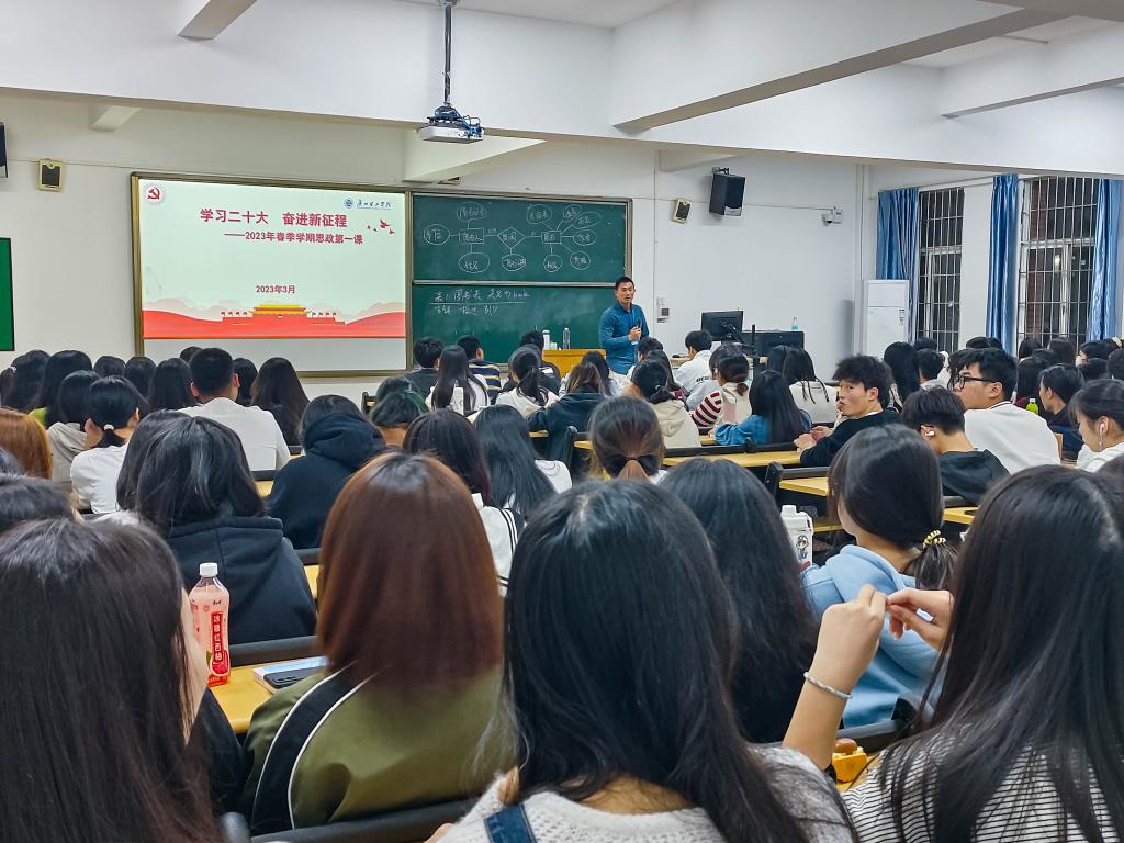 按照学校党委部署,人文与教育学院党总支书记刘亮、院长周卫忠于3月2日和3月7日开讲2023年春季学期 “思政第一课”。本次书记、院长思政第一课围绕“学习二十大、奋进新征程”主题,教育引导学院全体青年学生深刻认识习近平新时代中国特色社会主义思想的丰富内涵以及贯穿其中的世界观和方法论,进一步加深对党初心使命的理解和认识。