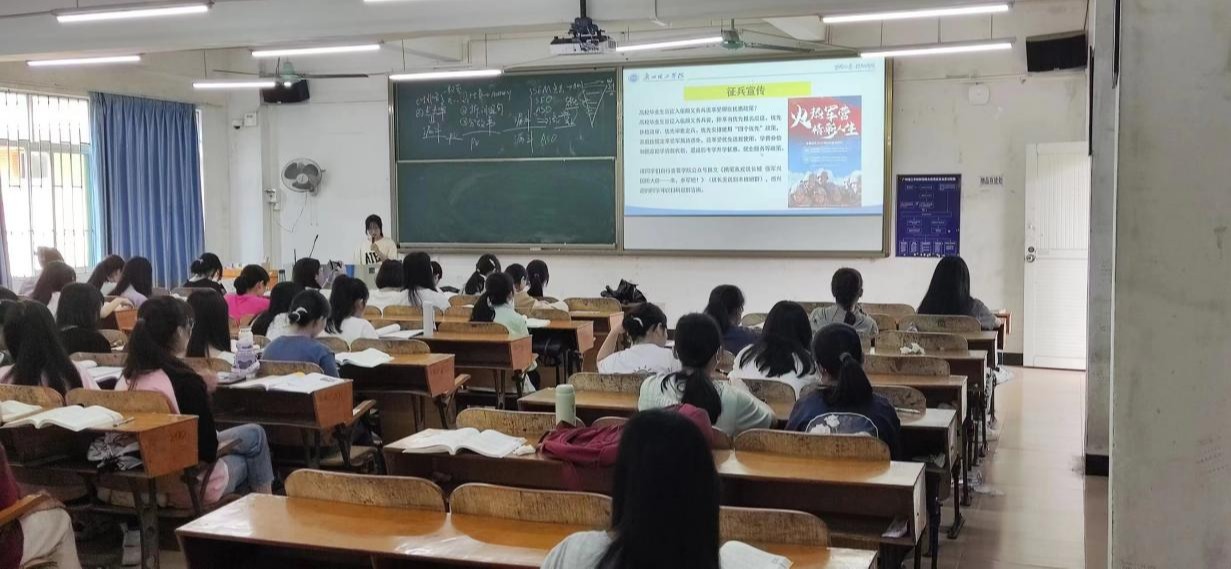 戒笔从戎勇担强军重任,绿色军营书写绚烂青春。为响应国家号召,高质量高标准推进征兵工作任务,5月15日,人文与教育学院以习近平新时代中国特色社会主义思想和习近平强军思想为指导,面向所有学生开展“不负青春韶华 踊跃参军报国”征兵宣传主题班会,为学生解读征兵政策。