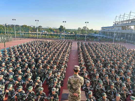 11月26日上午9点,广州理工学院惠州博罗校区在标准运动场隆重举行2023级新生军训会操大会,6500多名新生整装列队,接受学校检阅。学校校长胡社军,党委书记黄圣诚,常务副校长伏焕昌,党委副书记、副校长肖海,副校长张志红,机关部处和二级学院党总支负责同志出席,党委工作部部长陈朝阳主持。