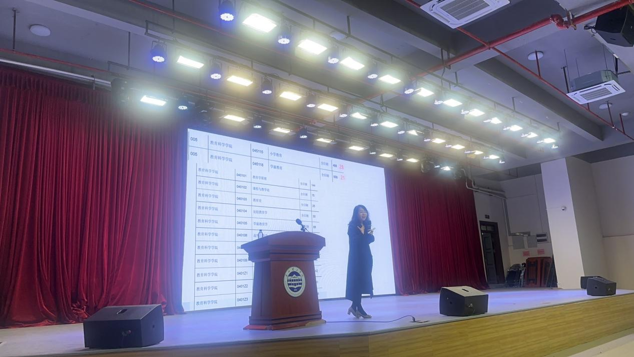 为促进和强化全院学生学习的积极性,创造好学、乐学、上进的学习氛围,普及考研的相关知识,帮助文教学子明确奋斗目标,我院于11月16日在13栋1号报告大厅开展考研指导讲座。本次讲座邀请了中央民族大学民族教育学博士姜老师担任主讲人,我院2022级小学教育专业全体学生参加本次教育学考研指导讲座。