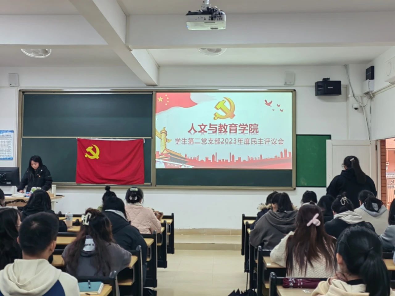 为进一步发扬党的优良传统,保持党员先进性,人文与教育学院学生第一党支部以及学生第二党支部在各支部书记的带领下,于2024年2月29日下午14:30在7栋教学楼402和403教室,开展党支部专题组织生活会和民主评议党员大会。