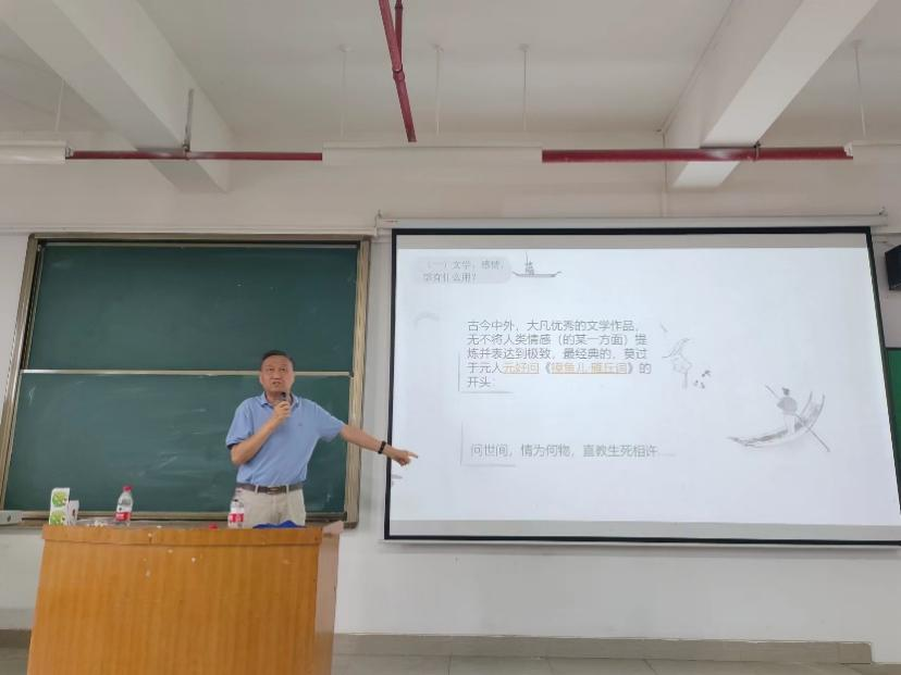 2024年4月22日下午三点,人文与教育学院主办的“广理大讲堂”——《文学、感情及美学漫谈》专题讲座在13栋403教室顺利举办。广东美学学会副会长、中山大学中文系王坤教授受邀给同学们带来了这场精彩纷呈的讲座,他以慷慨激昂的语调、饱满的精神热情引领同学们走入一场美学的“盛宴”。这是广州理工学院本学期“三全育人”周的系列学术讲座之一,参与讲座的师生觉得干货满满,大呼过瘾。