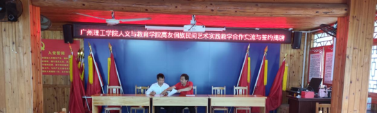 5月24日,广州理工学院人文与教育学院高友侗族民间艺术实践教学合作项目组在人文与教育学院岭南民族民间艺术美育工作室负责人覃守达教授带领下,前往广西柳州市三江侗族自治县林溪镇高友村的广西三江侗族自治县鼓楼文化有限公司,开展侗族民间艺术实践教学合作交流与签约揭牌。