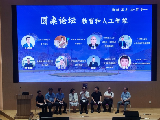 在圆桌沙龙环节,深圳理工大学教务长、学术委员会主任赵伟教授、广州理工学院人文与教育学院张志国副院长等八位与会专家围绕“教育与人工智能融合”展开深度对话。讨论聚焦八大核心议题:人工智能重构教学模式的可能性、人机协同课堂的定位、教师角色转型路径、智能体的功能边界、技术应用与人文素养的平衡、AIGC对学生批判性思维的影响、教育评价体系革新以及家校社协同育人机制。张志国副院长强调AI对写作教育的双重影响:效率提升(快速生成框架、优化逻辑)与创新局限(缺乏情感深度与文化积淀)。他建议中小学教育工作者,对于AI作品应标注AI生成,培养学术诚信;学会与AI对话,强化批判性思维,既要学会运用AI工具又要能判断其局限与优劣,引导学生发现与AI不同的创新维度;在教学课程中,搭建虚拟仿真教学资源平台,增强学生真实场景体验感。深圳理工大学潘毅教授提出,AI应成为“能力放大器”,而非替代教师;研修班学员则结合一线教学案例,强调教师需提升跨学科整合与个性化教学设计能力。研修班专家代表则结合教学实践提出,教师需转型为“引导者”与“协作者”,在AI辅助下强化个性化教学与跨学科整合。针对AIGC普及可能削弱学生原创能力的担忧,专家一致认为,需通过课程设计与评价改革,强调批判性思维的培养,同时建立AI生成内容的伦理规范与版权管理体系。
