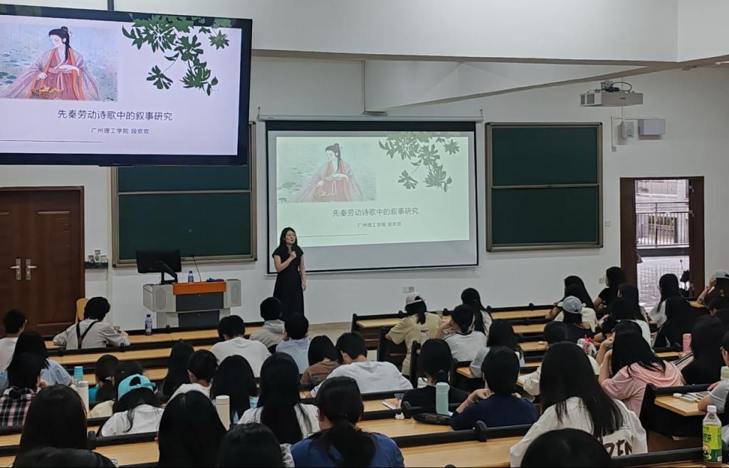5月29日下午,学校惠州校区1-208教室座无虚席,气氛热烈。人文与教育学院中文系段欢欢老师做客“广理大讲堂”,为师生带来一场题为《先秦劳动诗歌中的叙事研究》的精彩讲座。本次讲座由人文与教育学院于智慧老师主持,吸引了包括曹志超老师在内的百余名师生到场聆听,其中不乏24级汉语言文学、小学教育及网络与新媒体专业的学子。