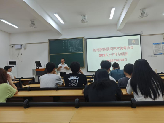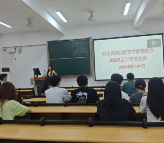 2025年6月23日,岭南民族民间艺术协会在广州理工学院惠州校区1-218成功召开了2025年上半年总结会议。本次会议由副会长曾慧姿同学主持,协会指导老师覃守达教授亲临现场,并对协会2025年上半年的工作情况进行了详细的总结,旨在激励协会成员更加主动地加入到协会工作中,为以后协会工作的开展奠定坚实的基础。