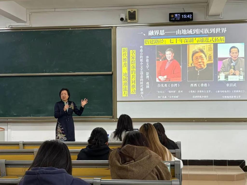 人文与教育学院于2025年11月20日在广州校区开展了由凌逾教授分享的以“搭建跨媒介文艺体系的西西”为主题的学术讲座。出席本次活动的嘉宾有文教学院院长陈南先、专任教师陈群、辅导员老师董欣华。