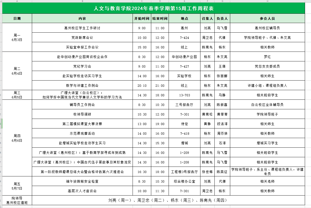 人文与教育学院2024年春季学期第15周工作周程表