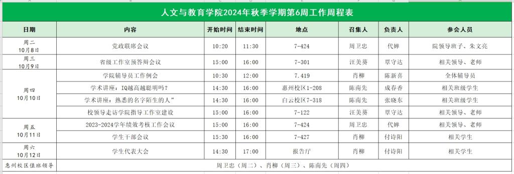 人文与教育学院2024年秋季学期第6周工作周程表