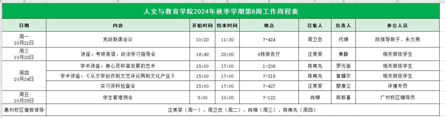 人文与教育学院2024年秋季学期第8周工作周程表