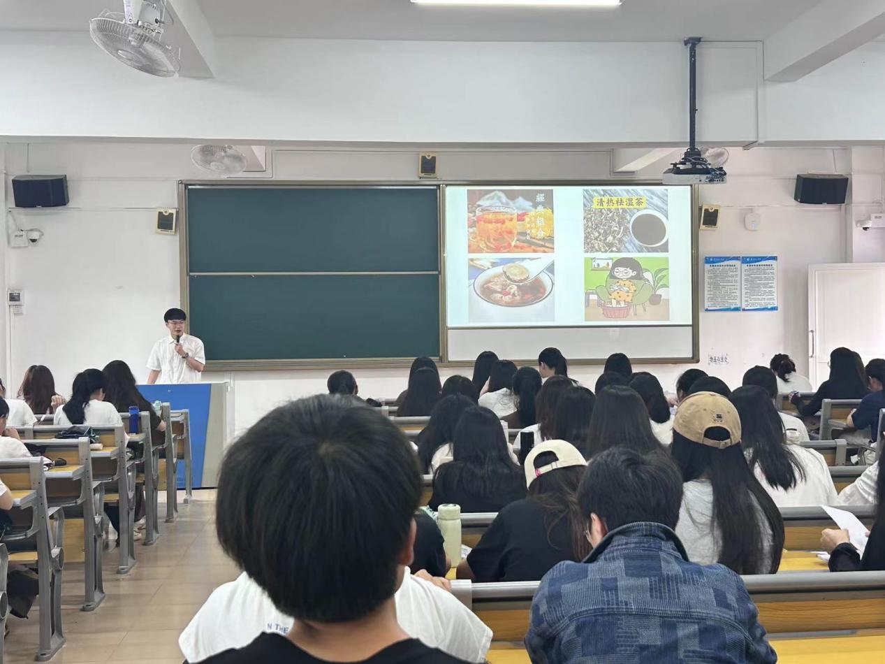 首先,洪俊彬博士以“日常生活中该如何进行养生”的话题展开,谈论了日常生活中人们常见的养生方式,向同学们讲解了何谓养生、养生的好处和意义。接着,洪俊彬博士从中医角度向同学们讲解了中医养生讲究“天人合一”,强调顺应自然规律,注重调和阴阳、五行平衡。同时通过中医经典《黄帝内经》展开了深入的交流与解析,探讨其中的养生之道,如何从阴阳、四季、日照时间等变化规律调整自己饮食的情况,达到更好养生的效果。此外,洪老师还从国学经典《论语》《中庸》,谈论了其独特的哲学思想,修身养性的理念与思想为现代养生实践提供了新的视角和方法。